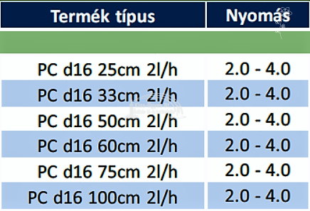 Polidrip nyomáskompenzált csepegtető cső 16/33cm, 2L/h 100-300 fm/tekercs, ár/fm