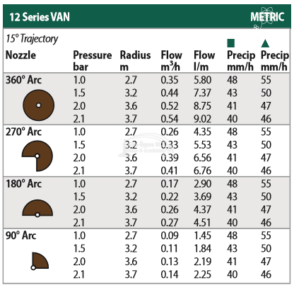 RB 12 VAN állítható fúvóka 1800-as és Uni Spray fejekhez r= 4m