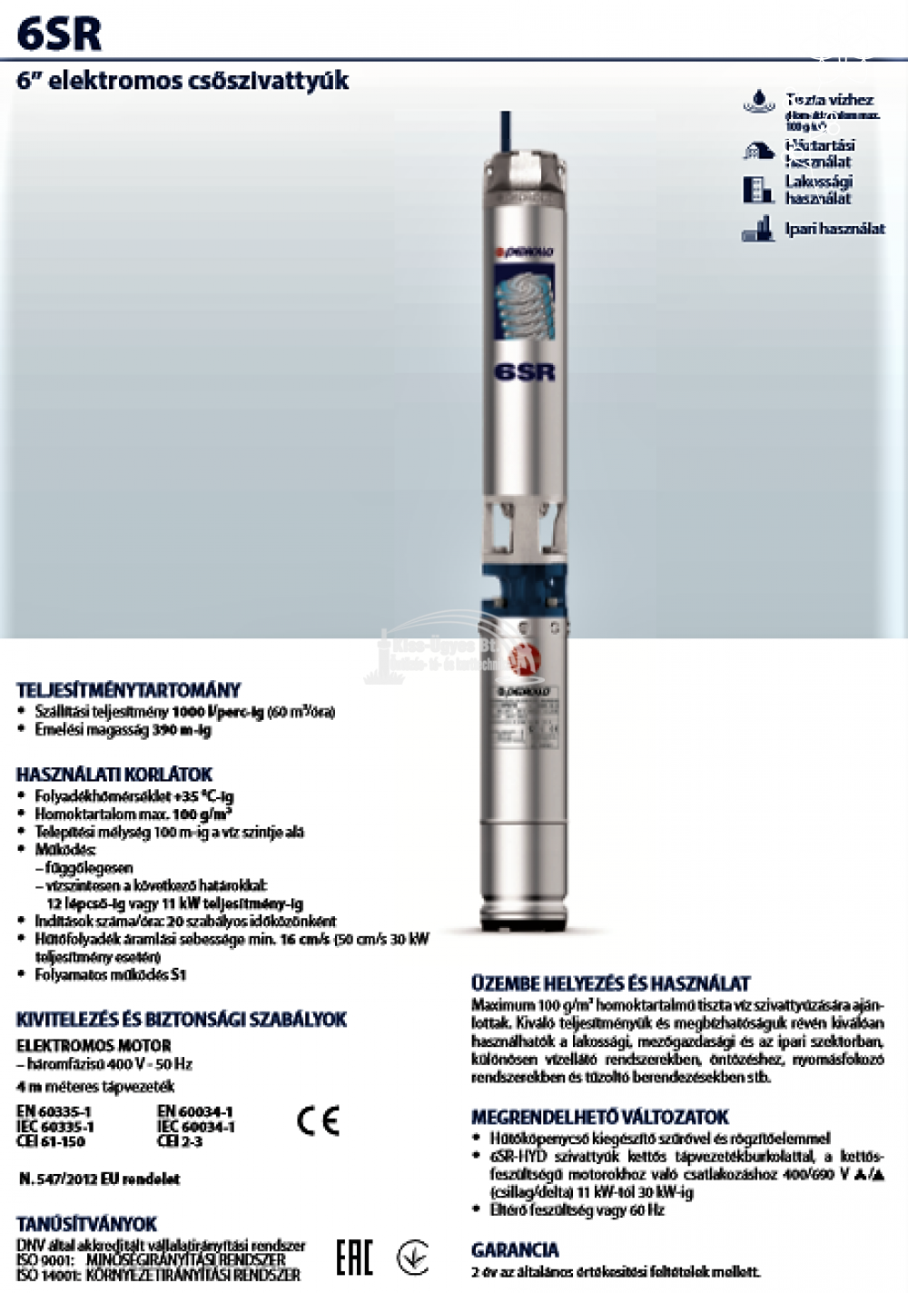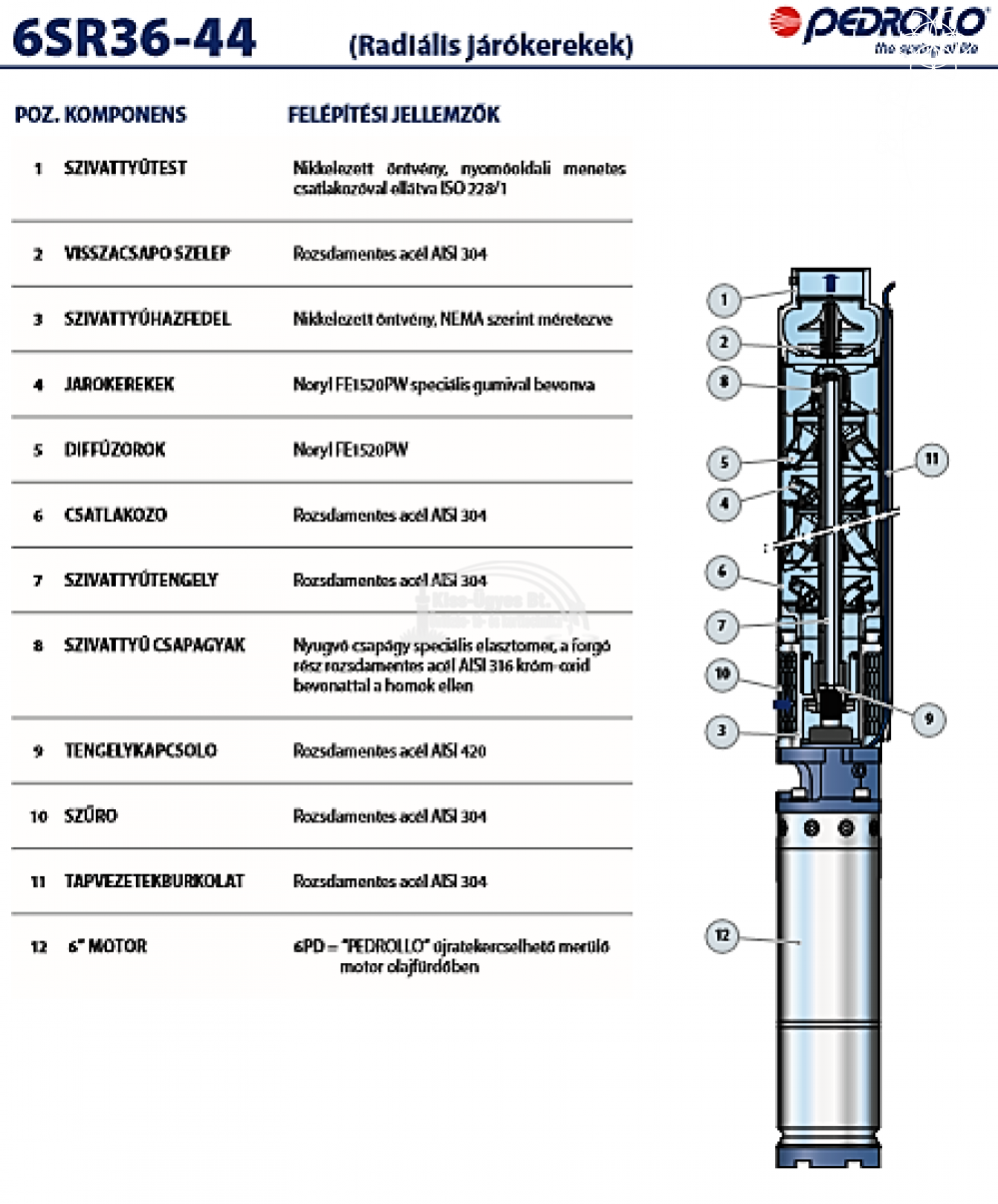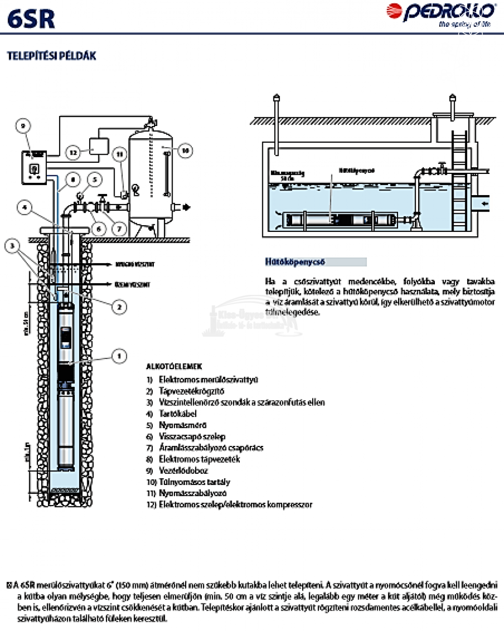 Pedrollo 6SR sorozatú 6"-os csőszivattyúk