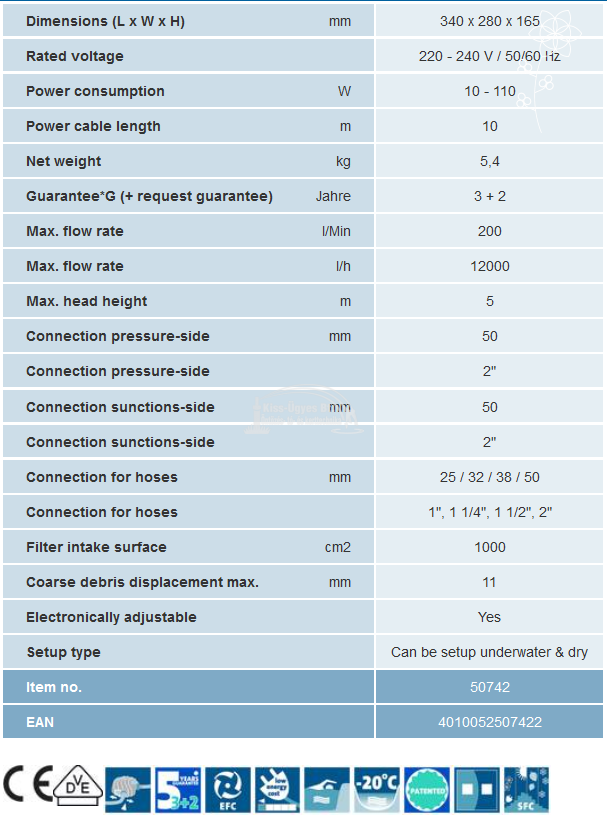 Oase AquaMax Eco Prémium 12000 szűrőtápláló és patak szivattyú, fordulatszabályzási lehetőséggel, 2 szívócsonkkal, 12.000L/h