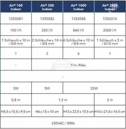 Ubbink Air 1000 beltéri tólevegőztető pumpa +6x10m tömlővel+6habkővel max. 9.000L -es tavakhoz.