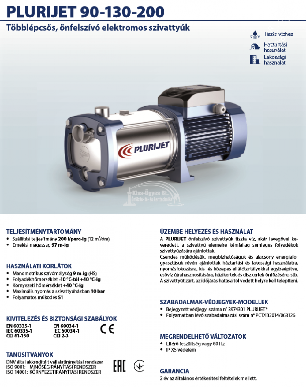 Cikkszám: PLURIJET 6/130-N | Megrendelésre