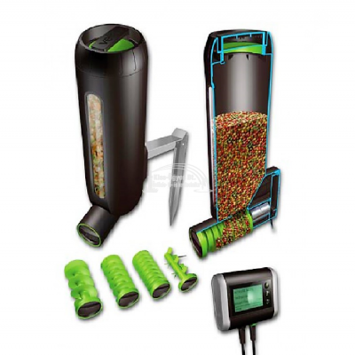 Velda Fish Feeder Pro 3 literes haletető autómata, LCD kijelzős programozható vezérlővel. Beállítható az etetések közötti idő - minimum 30 perc, az etetések ideje - max. 30 másodperc, a napi etetések száma - 1 és 20 között, ezen paramétereken belül különböző programok. A készülék 4 db különböző eleség továbbító csigával használható, ezek a szett részét képezik. Ennek köszönhetően különböző fajtájú és méretű halakhoz alkalmazható. Az eleség mérete  és típusa az egyes csigák szerint a következő: 1. leg sűrűbb csiga 3 és 5 mm közötti, 2. közepes sűrűségű csiga 6 és 8 mm közötti, 3. ritka menetes csiga 9 és 12 mm közötti haltápokhoz, 4. csavart karmos tengely természetes eleségekhez való. Naponta többször is eteti a halakat ha szükséges, minden időjárási körülmények között, vagy ünnepnapokon, szabadságolások idején, vagy ha hajlamos megfeledkezni az etetésről, esetleg munkája miatt nincs rendszeresen ideje megetetni kedvenc halait. Általa folyamatos növekedés, élénk színek, és egészséges halállomány érhető el. Alkalmas különféle halak etetésére.