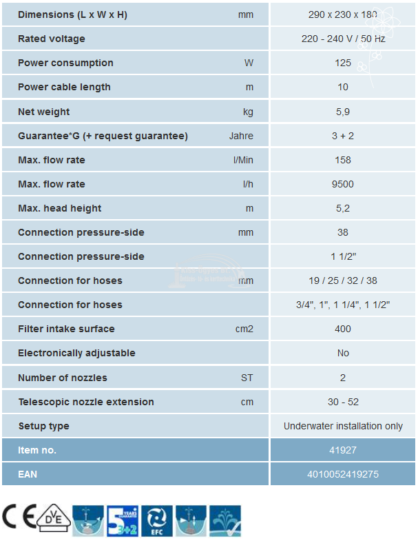 Oase Aquarius Fountain Set Eco 9500 szökőkút szivattyú, 2 fúvókával, 9.500L/h