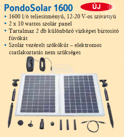 Pontec PondoSolar 1600 napelemes szökőkút szivattyú, 1600L/h, 2 fúvókával (2 év garancia)