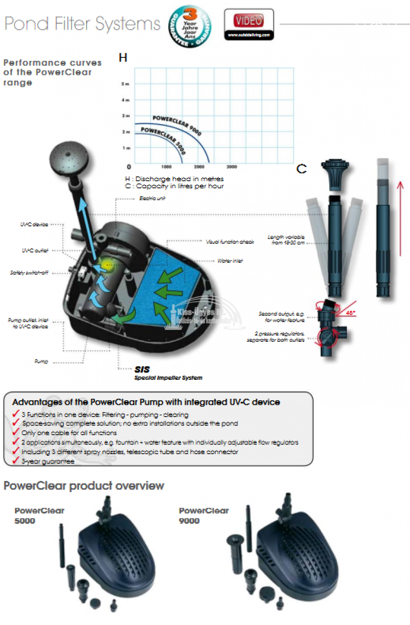 Ubbink PowerClear 5000 prémium szökőkút szivattyú 5W UV-C lámpával, 1500 L/h ( 3 év garancia )