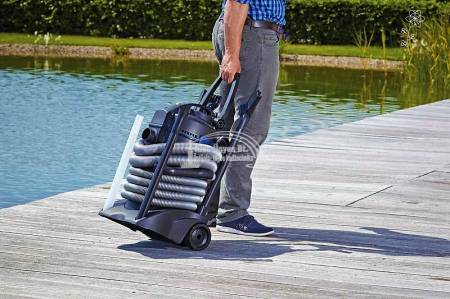Oase PondoVac 3 iszapszívó, tóporszívó 3 az 1-ben, tóporszívó , medenceporszívó, vizesporszívó. 4000L/h kapacitású, 1.600W teljesítmény, hatékony szívási mélység max. 2,1 m, elektromos kábel hossza 4 m. Folyamatos felszívás az automatikus szennyezettvíz ürítés mellett, köszönhetően a szabadalmaztatott kétkamrás rendszernek - szimultán porszívózás és tartály ürítés. Könnyen mozgatható, a 2 keréknek és az állítható fogantyúnak köszönhetően. Tavakhoz ( már úszótavakhoz is! ), medencékhez és vizes takarításhoz ajánlott, különböző fejekkel ellátva: padló-, rés-, fonalalga- és változtatható, speciális iszapszívó, melynek nyílási tartománya 2-10mm között állítható. Tartozékok: 4 m szívó gégecső, 2,5 m nyomó gégecső, 4 részes merev szívószár, melyből egy átlátszó, 1 porzsák, 1 durva törmelék gyűjtő és a fentebb leírt tisztítófejek.