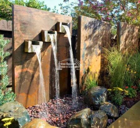 Ubbink Niagara 30 vízeséselem, 30 cm széles, anyaga inox. 1" -os belsőmenetes bekötési lehetőség a tartály alján és hátulján. A méretezést a lentebbi ábrán találja. Ezen felül néhány ötlet képekben az alkalmazáshoz.
