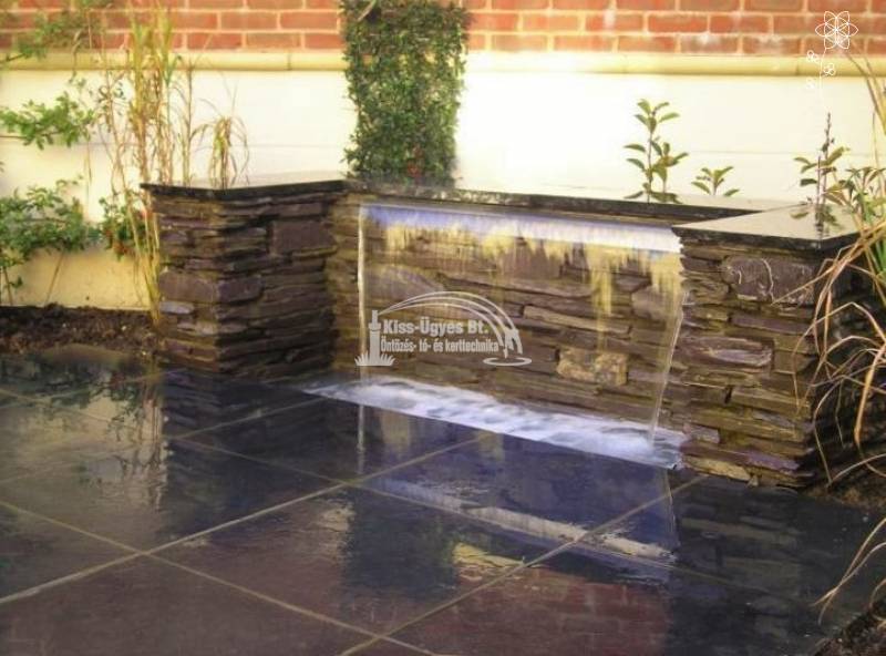 Ubbink Niagara 90 vízeséselem, 90 cm széles, anyaga inox. 1" -os belsőmenetes bekötési lehetőség a tartály alján és hátulján. A méretezést a lentebbi ábrán találja. Ezen felül néhány ötlet képekben az alkalmazáshoz.